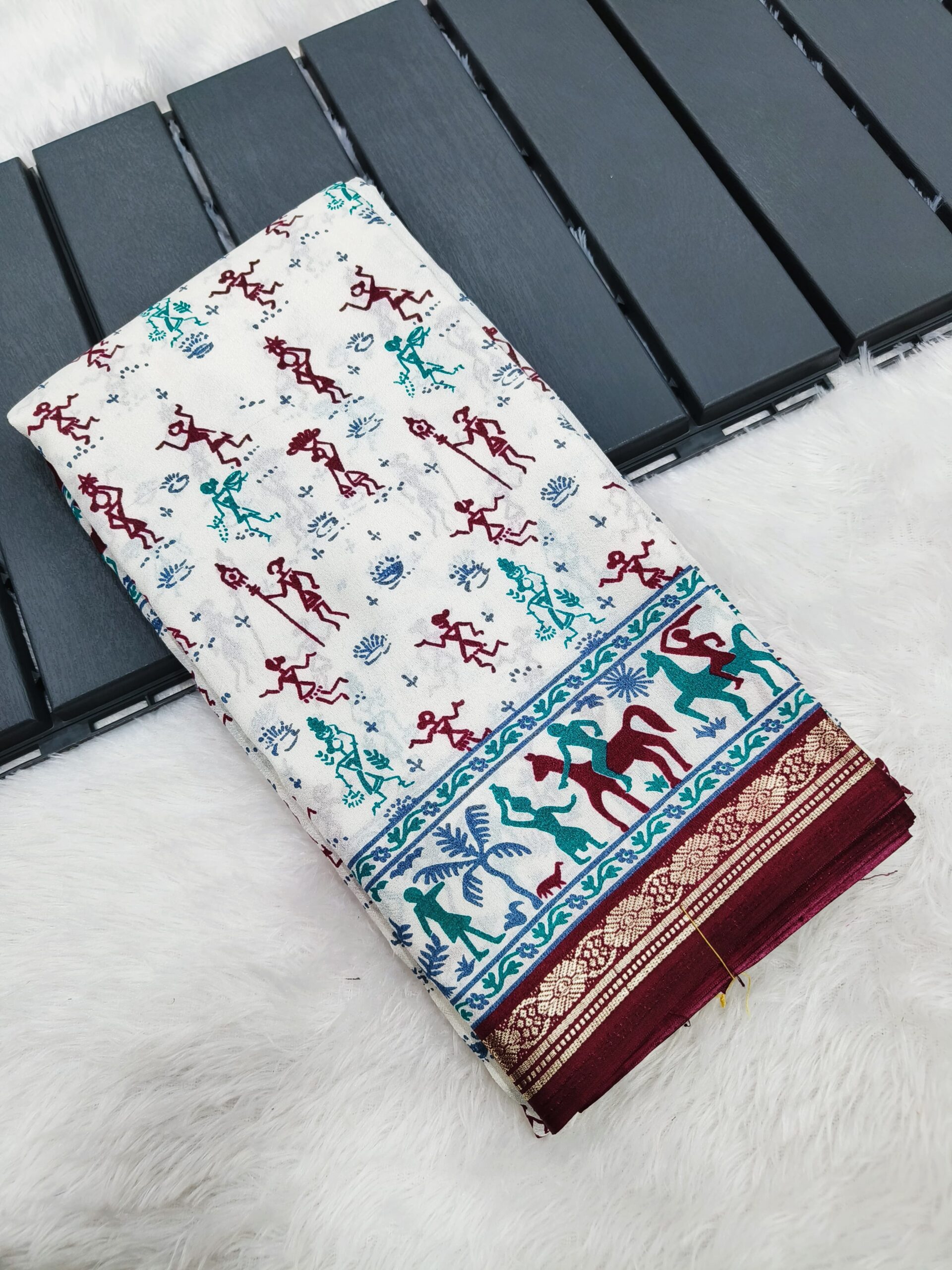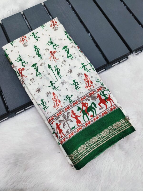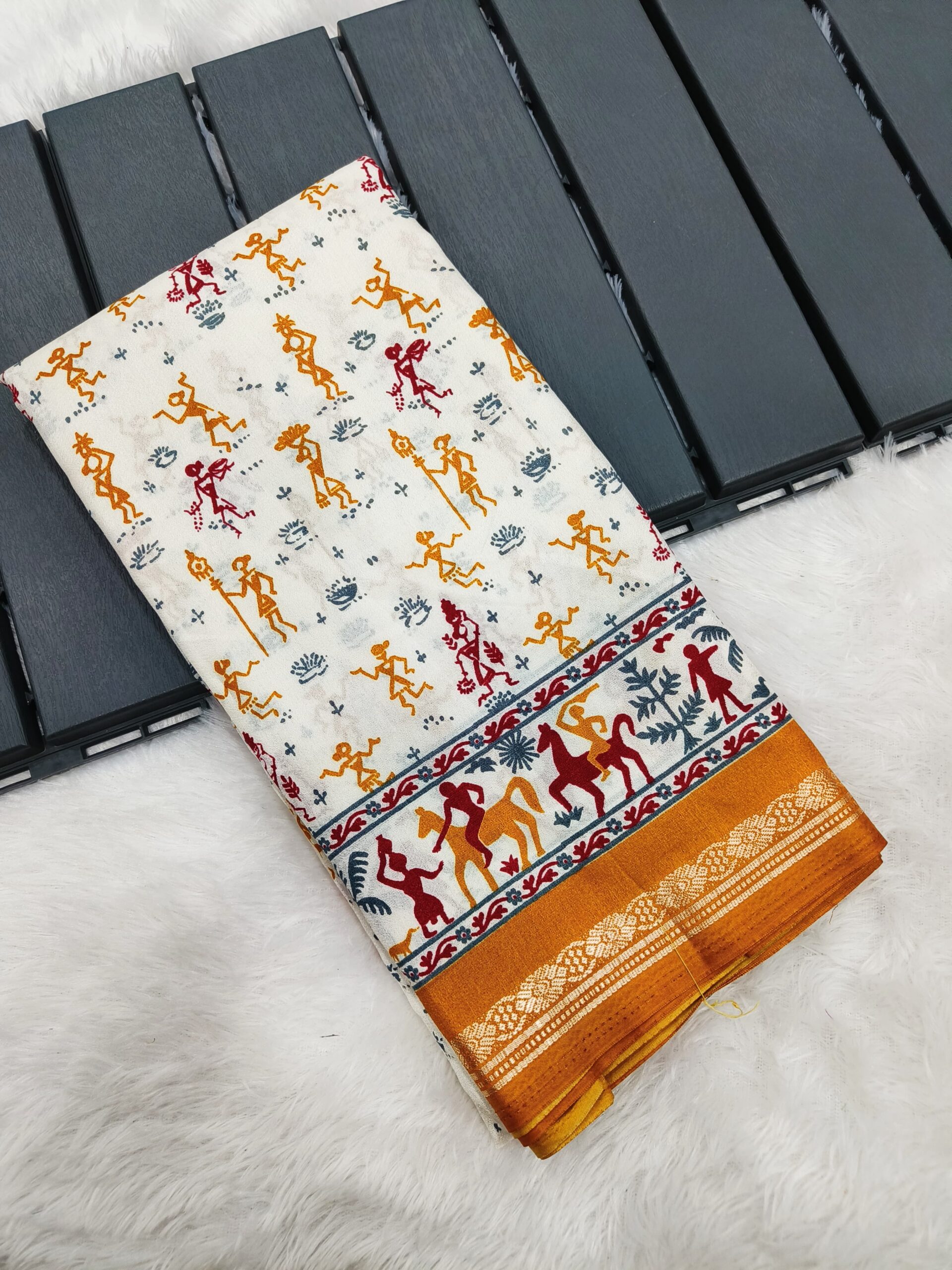 Quality- heavy tusser silk saree with golden zari border and perfectly matched Allover running Blouse.